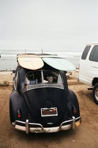 Sweet summer. Black Beetle with Surf boards on the beach